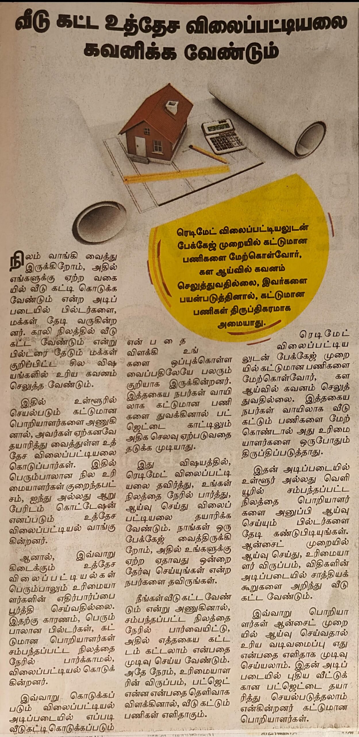 “From the estimate prepared by the builder, if you understand the specifications of materials, labour charges, and total cost clearly, it will help you plan your budget properly and avoid financial difficulties during construction.”